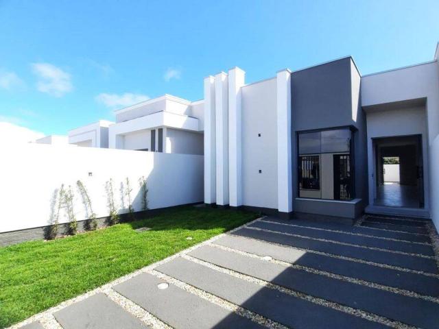 Casa à venda em Tijucas-SC, no Parque Residencial Lemos, com 59m²: 2 dormitórios (1 suíte), living integrado, área de serviço, e 1 vaga descoberta. Inclui acabamentos de qualidade como gesso, porcelanato, paisagismo, nicho no banheiro, infra para ar-condicionado, grades pretas e pintura emborrachada.